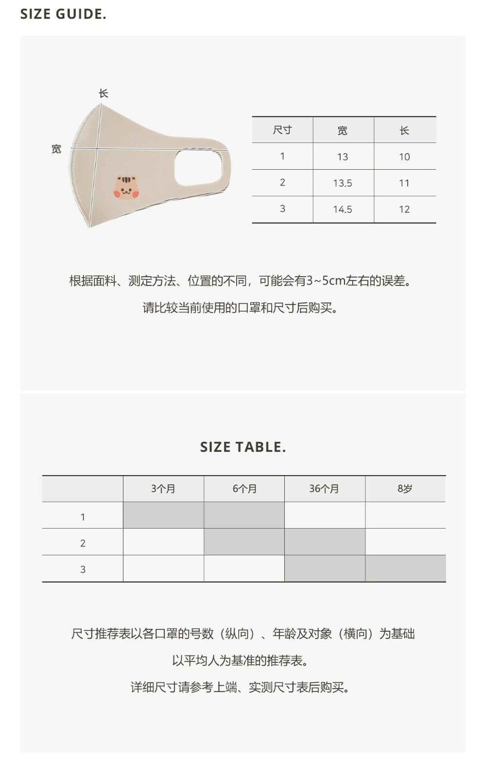 Size 3 : 3-8y